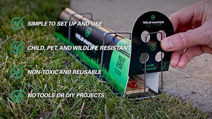 The VOLE-INATOR reusable vole station provides effective and safe vole control designed specifically for voles. Use with spring or live options available from other retailers online on in store.